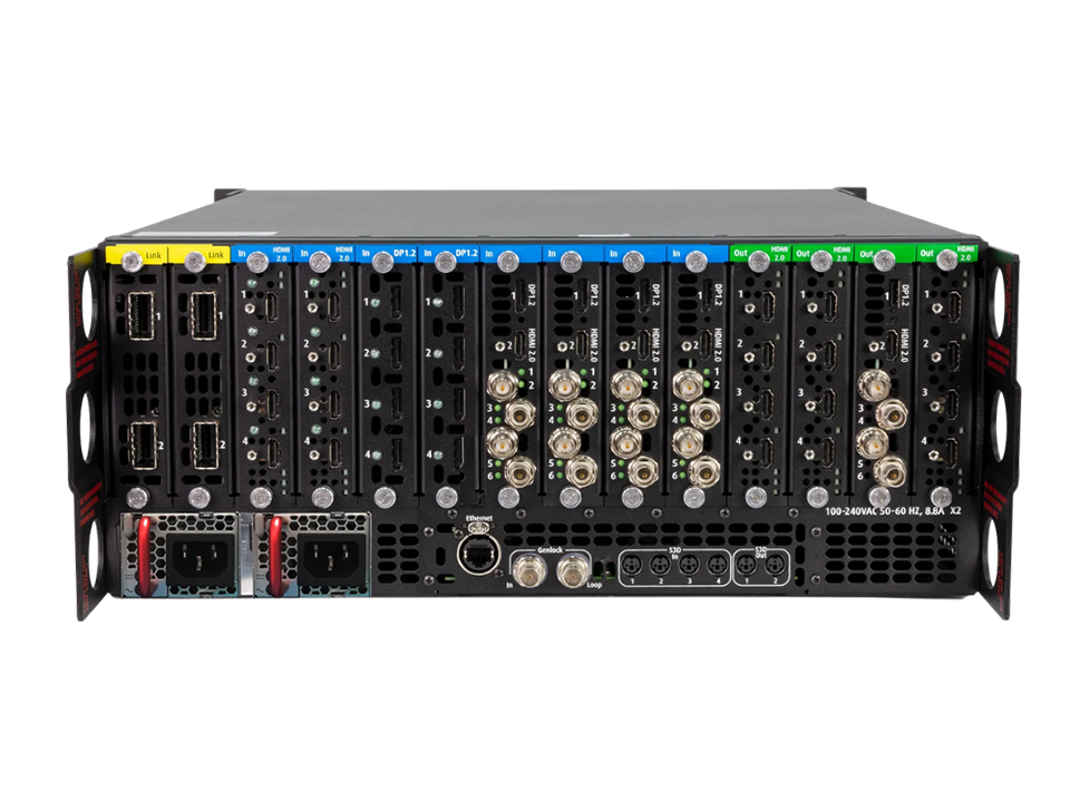 O Encore3 é um sistema de processamento de imagem 4K nativo, projetado para aplicações profissionais de AV ao vivo. Suporta telas ilimitadas com até 8 saídas PGM 4K60 e 8 camadas 4K60 por tela, oferecendo transições avançadas, Multiviewer e áudio incorporado. Flexível e escalável, permite configuração modular Build To Order, operação pelo Event Master Toolset e integração de até dois chassis interligados, garantindo desempenho de baixa latência, controle refinado e expansão futura.